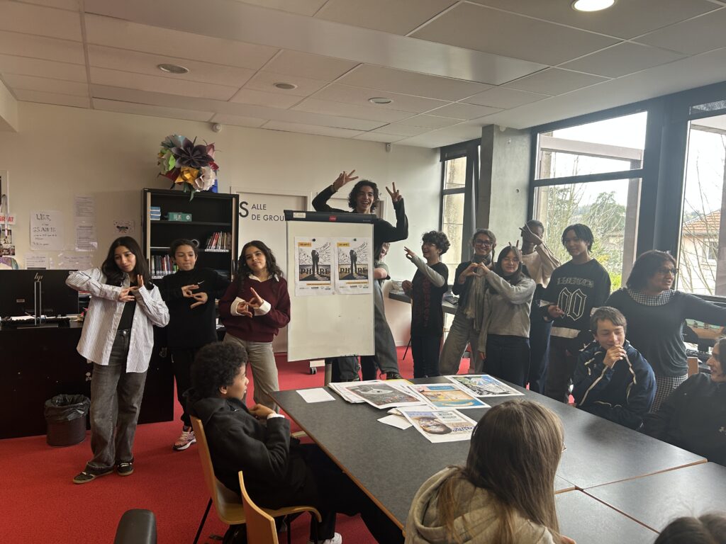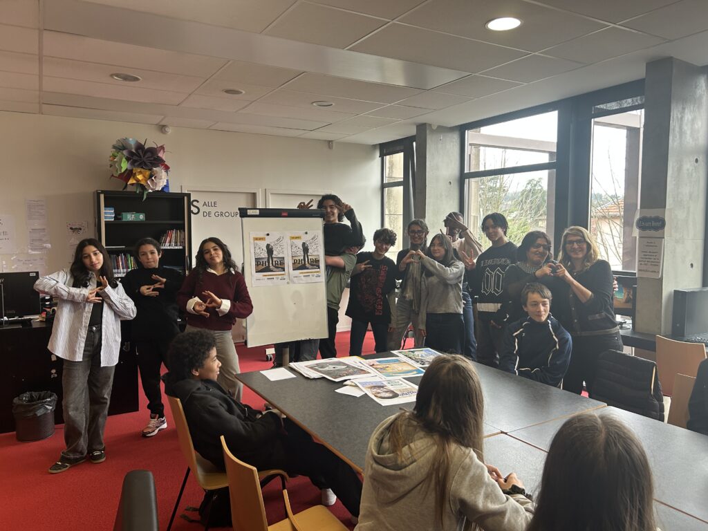 Nous avons fini de réfléchir à l’affiche qui représentera notre collège au concours “Non au harcèlement 2026” (grâce à l’aide précieuse de Gwenaël, AED qui a une solide formation en Arts appliqués) puis nous avons échangé autour du rôle de témoin suiveur et de celui de témoin positif et empathique… Ce fût un beau moment de partage et d’échanges!