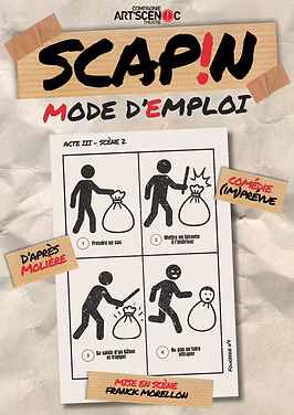 Ils étaient 2 comédiens sur scène pour jouer 10 personnages ! Cette pièce est assez vieille, et les deux acteurs ont réussi à la moderniser, et la rendre bien plus amusante, loufoque, et intéressante. Il n’y avait pas beaucoup de décors mais seulement deux cartons, un bâton, un rideau blanc et un papier nommé « le mode d’emploi », avec tous les personnages et leurs liens entre eux. La pièce raconte le récit de deux amis, Léandre et Octave. Ils cherchaient à se trouver une femme (Hyacinte pour Octave, et Zerbinette pour Léandre) tandis que leurs pères étaient en voyage. Mais leurs pères Argante et Géronte, reviennent, en colère : ils sont au courant des bêtises des deux jeunes hommes. Scapin, le valet de Léandre, fourbe, décide de les aider en utilisant quelques ruses, quelques «fourberies », justement.